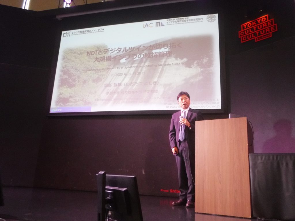 平成26(2014)年4月に可視化できない土木構造物内部の劣化を調査診断できる先端技術を研究開発する場として共通の問題を有する西日本高速道路、阪神高速道路および、両者のエンジニアリング会社が中心となり、当時社会基盤工学専攻宮川豊章教授を本学の代表者、白土博通教授(故人)、塩谷智基特定教授を運営委員として「インフラ先端技術共同研究講座」が設立された。